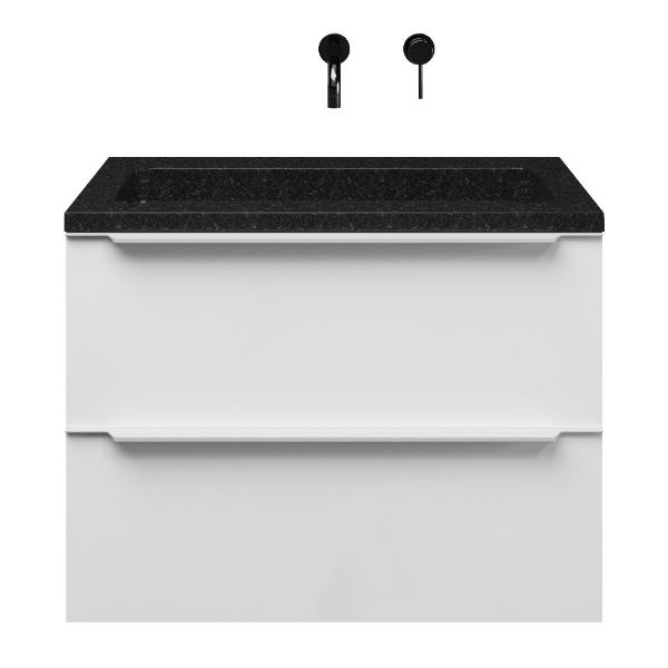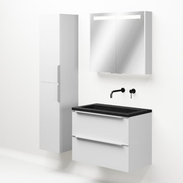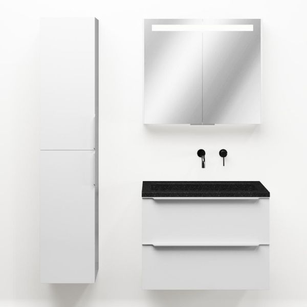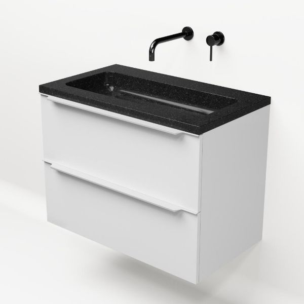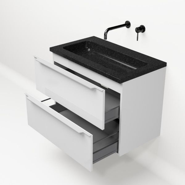 | Bellanti Lucilla/Square badmeubel 80x46 2 softclose laden wit hoogglans met greep naar keuze natuursteen wastafel shanxi black zonder kraangat |