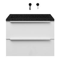 | | Bellanti Lucilla/Square badmeubel 80x46 2 softclose laden wit hoogglans met greep naar keuze natuursteen wastafel shanxi black zonder kraangat |