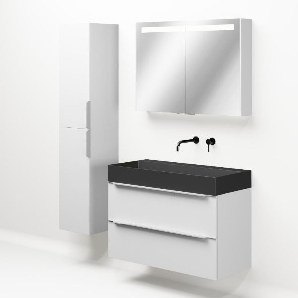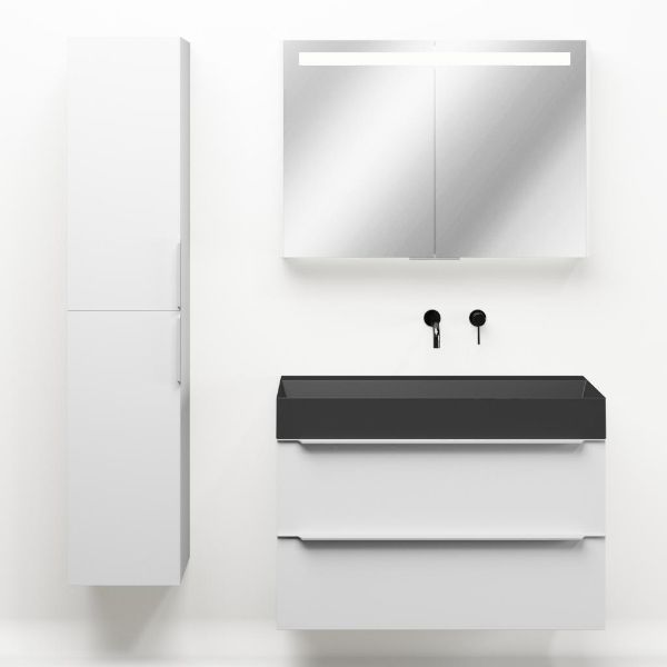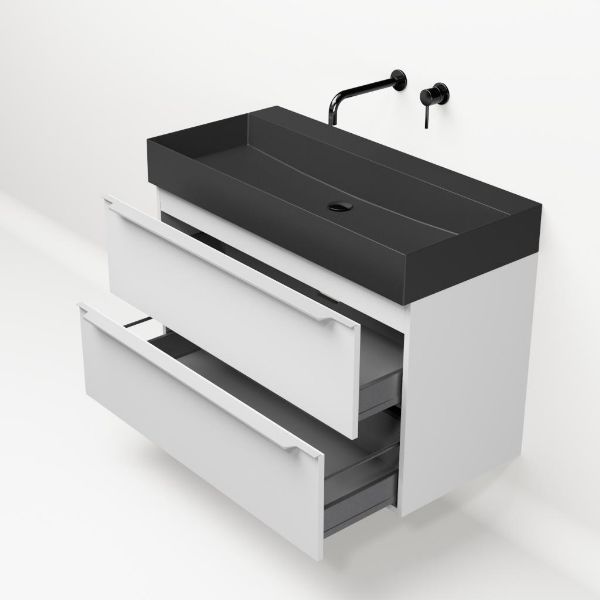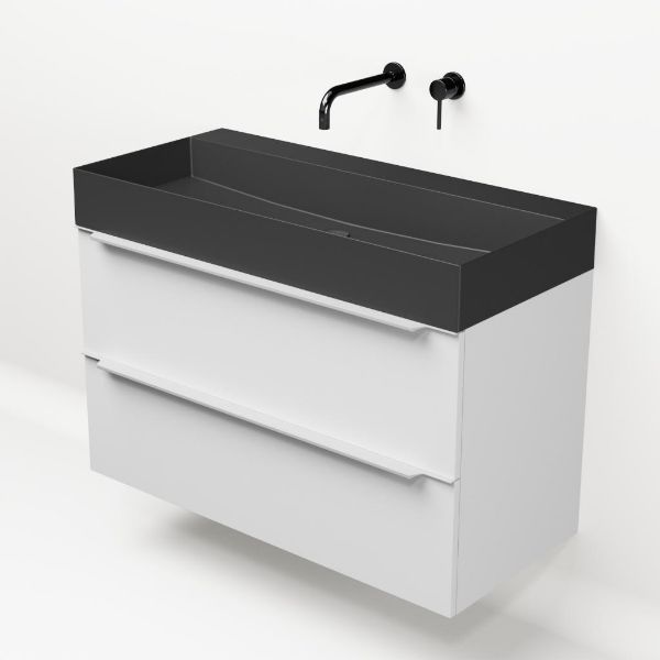 | Bellanti Lucilla/Azzurra badmeubel 100x46 2 softclose laden mat wit met greep naar keuze keramische wastafel antraciet mat zonder kraangaten |