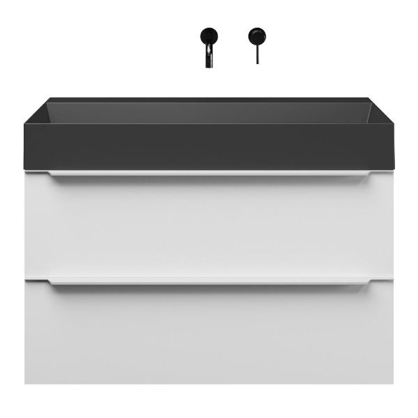 | | Bellanti Lucilla/Azzurra badmeubel 100x46 2 softclose laden mat wit met greep naar keuze keramische wastafel antraciet mat zonder kraangaten |