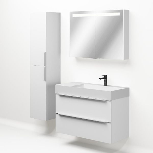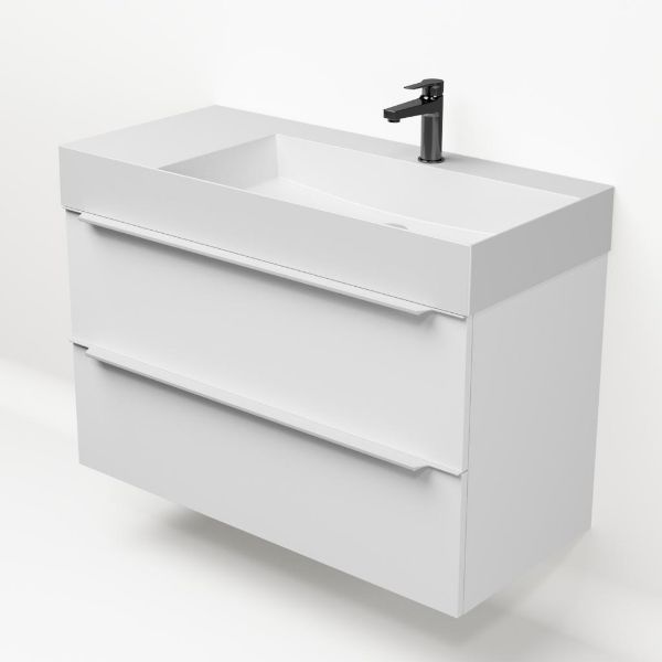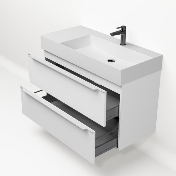 | | Bellanti Lucilla/Azzurra badmeubel 100x46 2 softclose laden mat wit met greep naar keuze keramische wastafel rechts wit mat met 1 kraangat |