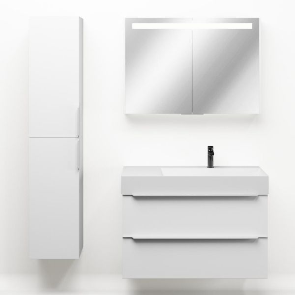 | Bellanti Lucilla/Azzurra badmeubel 100x46 2 softclose laden mat wit met greep naar keuze keramische wastafel rechts wit mat met 1 kraangat |