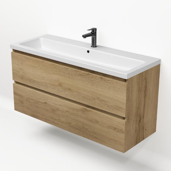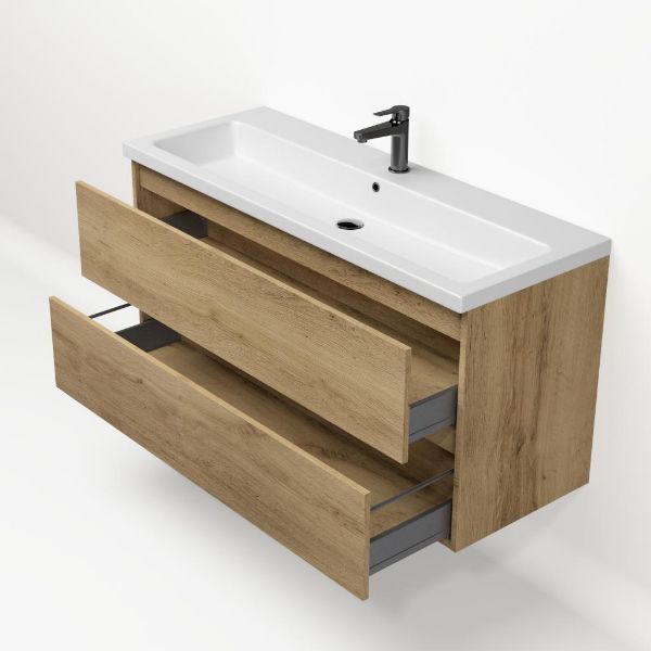 | | Bellanti Fiore /Amelia badmeubel 120x46 2 softclose laden warm eiken greeploos keramische wastafel wit mat met 1 kraangat |