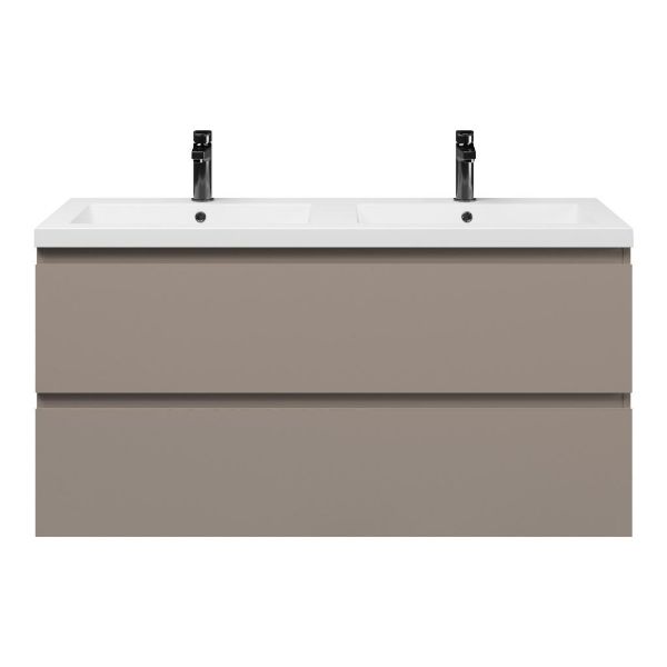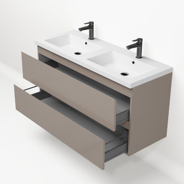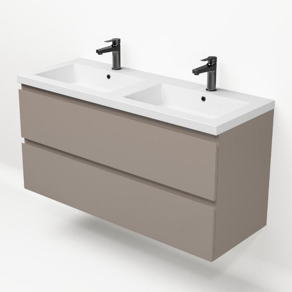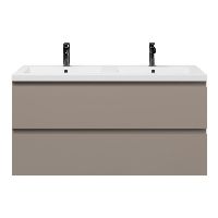 | Bellanti Fiore/Esta badmeubel 120x46 2 softclose laden taupe greeploos polystone wastafel dubbel wit met 2 kraangaten |