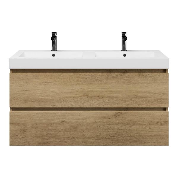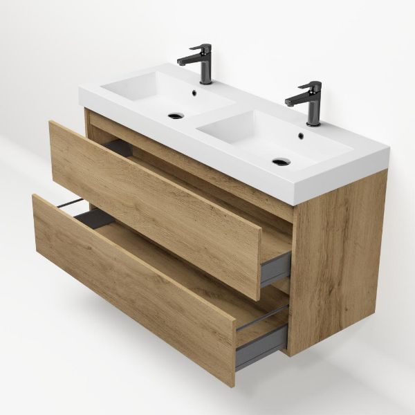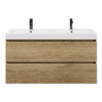 | Bellanti Fiore/Esta badmeubel 120x46 2 softclose laden warm eiken greeploos polystone wastafel dubbel wit met 2 kraangaten |