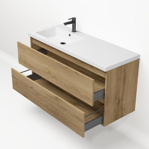 Bellanti Fiore/Esta badmeubel 120x46 2 softclose laden warm eiken greeploos polystone wastafel wit met 1 kraangat