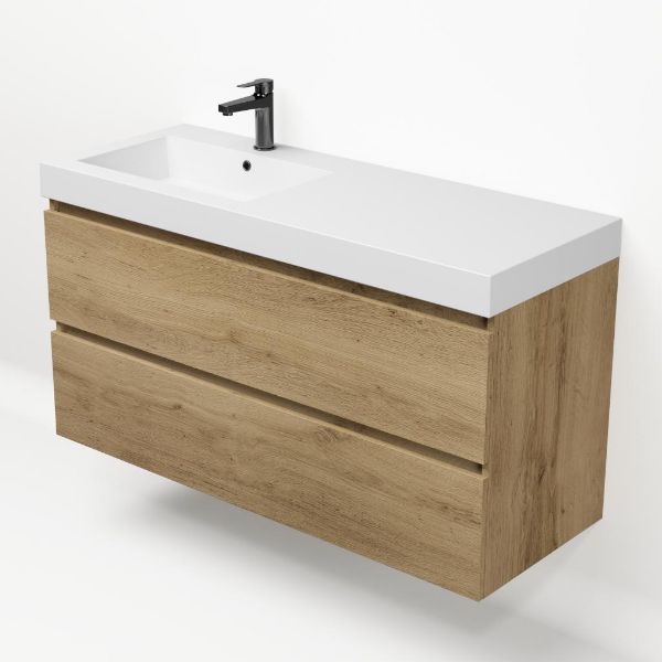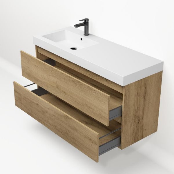 | | Bellanti Fiore/Esta badmeubel 120x46 2 softclose laden warm eiken greeploos polystone wastafel wit met 1 kraangat |