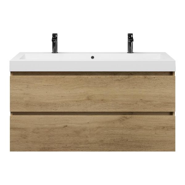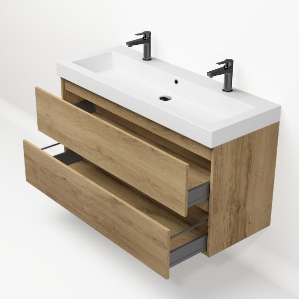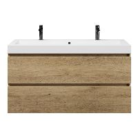 | | Bellanti Fiore/Esta badmeubel 120x46 2 softclose laden warm eiken greeploos polystone wastafel wit met 2 kraangaten |
