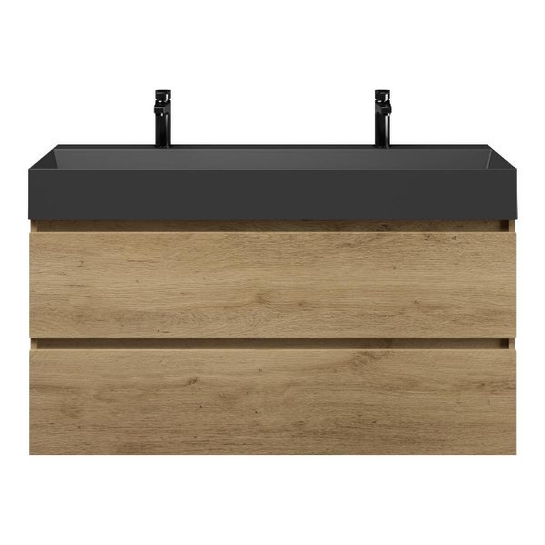 | | Bellanti Fiore/Azzurra badmeubel 120x46 2 softclose laden warm eiken greeploos keramische wastafel enkel antraciet mat met 2 kraangaten |