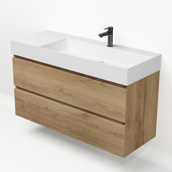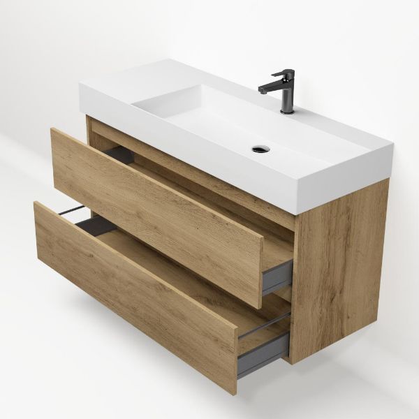 | Bellanti Fiore/Azzurra badmeubel 120x46 2 softclose laden warm eiken greeploos keramische wastafel rechts wit glans 1 kraangaten |