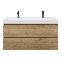 | Bellanti Fiore /Renzo badmeubel 120x46 2 softclose laden warm eiken greeploos polystone wastafel wit met 2 kraangaten |