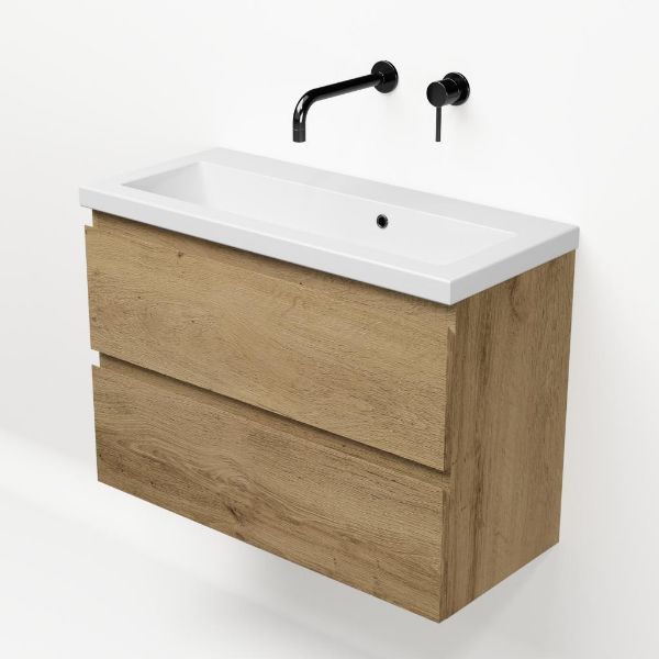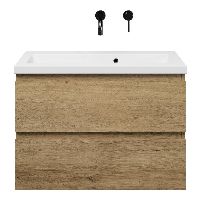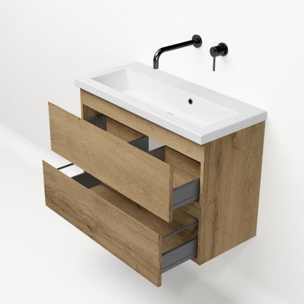 | | Bellanti Secca/Amelia ondiep badmeubel 80x36 2 softclose laden warm eiken greeploos keramisch wastafel wit zonder kraangaten |