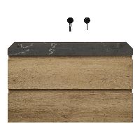 | | Bellanti Secca/Stone ondiep badmeubel 100x36 2 softclose laden warm eiken greeploos natuurstenen wastafel bluestone met 0 kraangaten |