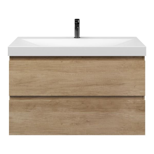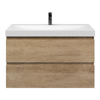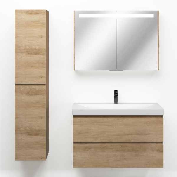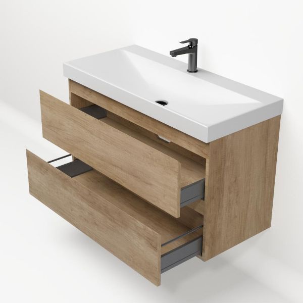 Greeploos badkamermeubel in de kleur olm is 100 cm breed.  De wastafel is vervaardig in keramiek en heeft de kleur wit mat. Dit badkamermeubel met deze wastafel is leverbaar in 100 cm