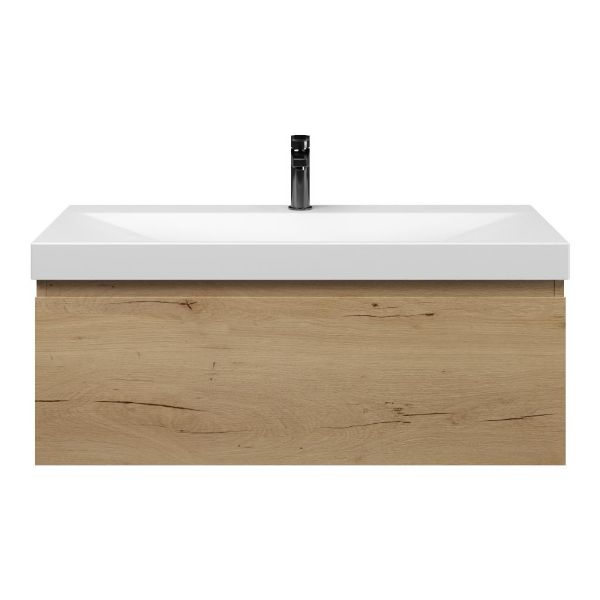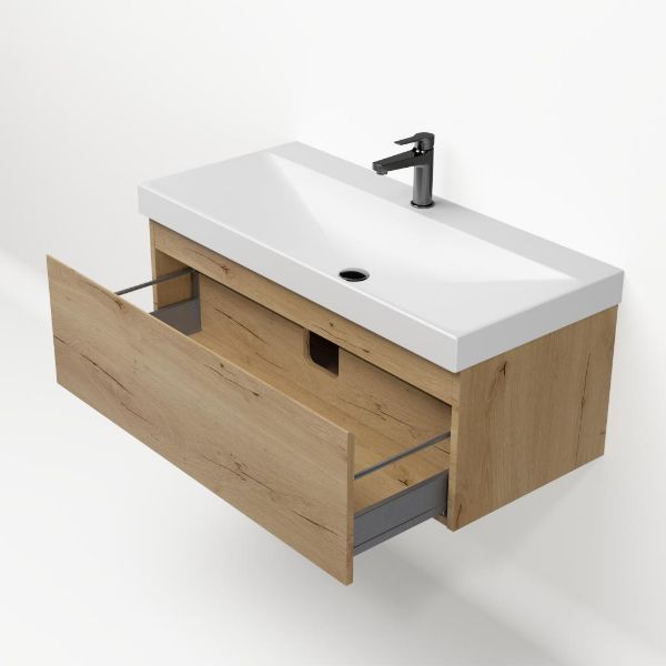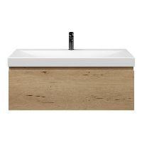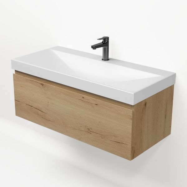 | | Bellanti Solo/Jenthe badmeubel 100x46 1 softclose lade eiken natuur greeploos keramische wastafel wit mat met 1 kraangat |