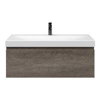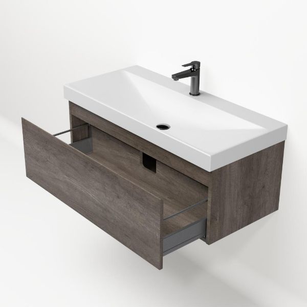| | Bellanti Solo/Jenthe badmeubel 100x46 1 softclose lade olm donker grijs greeploos keramische wastafel wit mat met 1 kraangat |