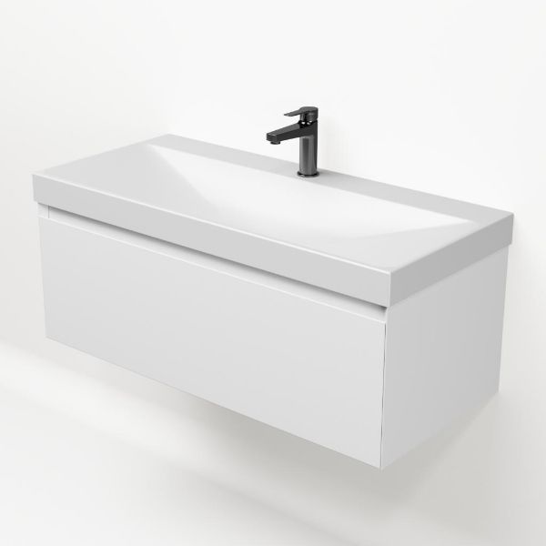 | Bellanti Solo/Jenthe badmeubel 100x46 1 softclose lade wit mat greeploos keramische wastafel wit mat met 1 kraangat |