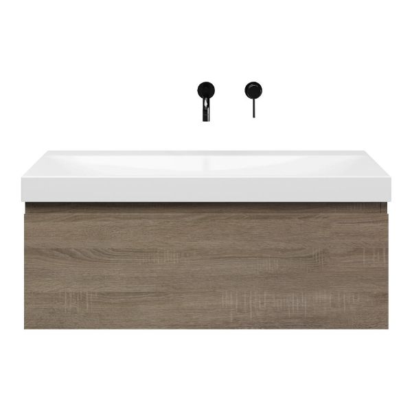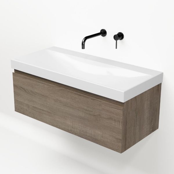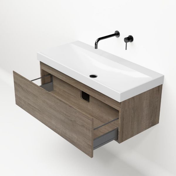 | Bellanti Solo/Jenthe badmeubel 100x46 1 softclose lade eiken donker greeploos keramische wastafel wit glans zonder kraangaten |