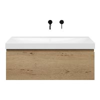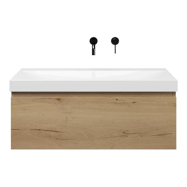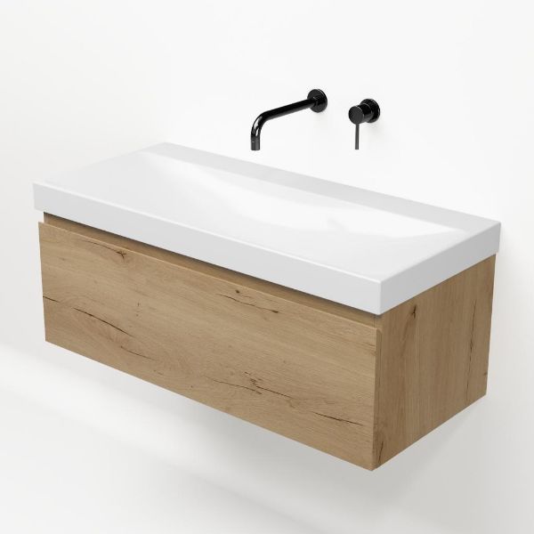 | | Bellanti Solo/Jenthe badmeubel 100x46 1 softclose lade eiken natuur greeploos keramische wastafel wit glans zonder kraangaten |