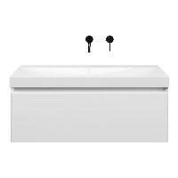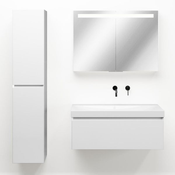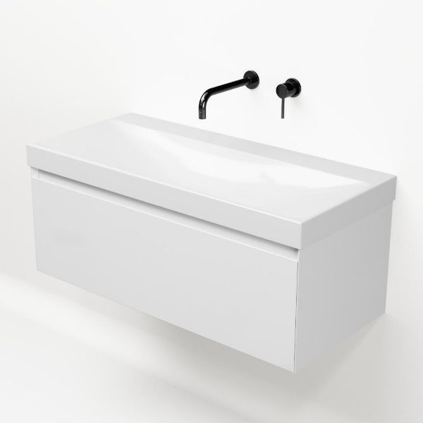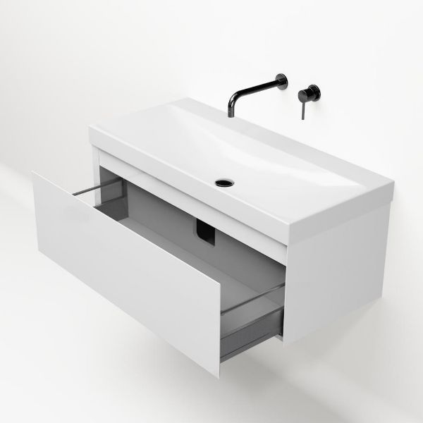 | | Bellanti Solo/Jenthe badmeubel 100x46 1 softclose lade wit hoogglans greeploos keramische wastafel wit glans zonder kraangaten |
