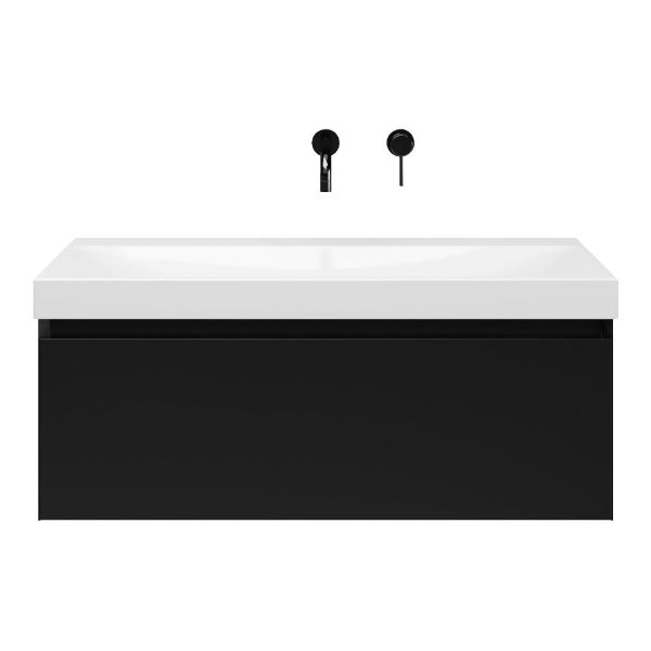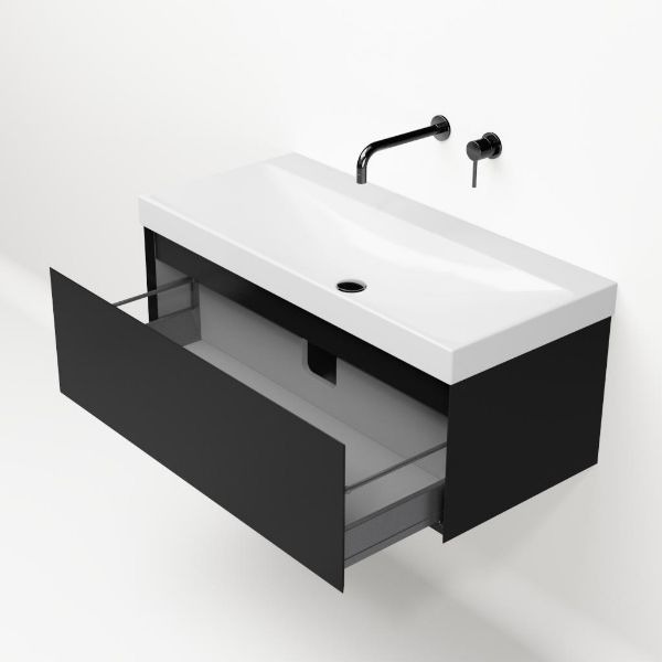 | | Bellanti Solo/Jenthe badmeubel 100x46 1 softclose lade zwart mat greeploos keramische wastafel wit glans zonder kraangaten |