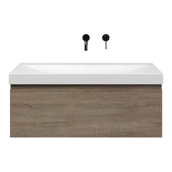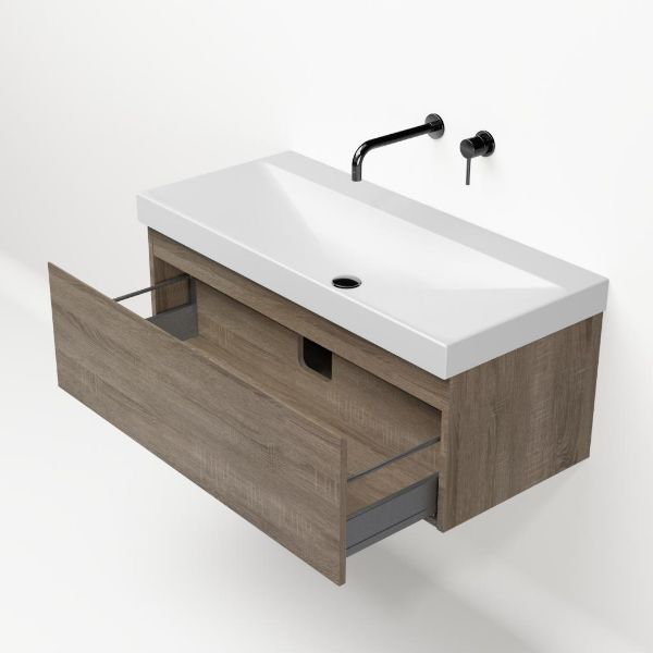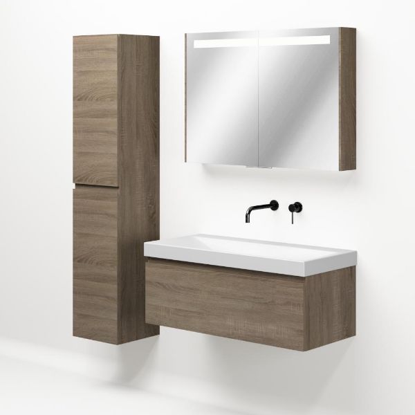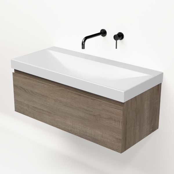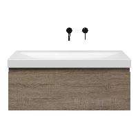 | Bellanti Solo/Jenthe badmeubel 100x46 1 softclose lade eiken donker greeploos keramische wastafel wit mat zonder kraangaten |