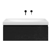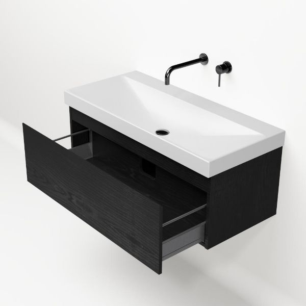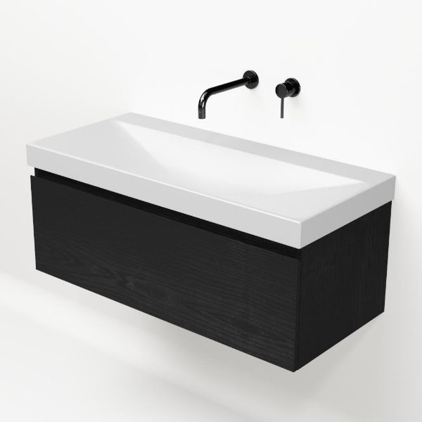 | | Bellanti Solo/Jenthe badmeubel 100x46 1 softclose lade mat zwart eiken greeploos keramische wastafel wit mat zonder kraangaten |