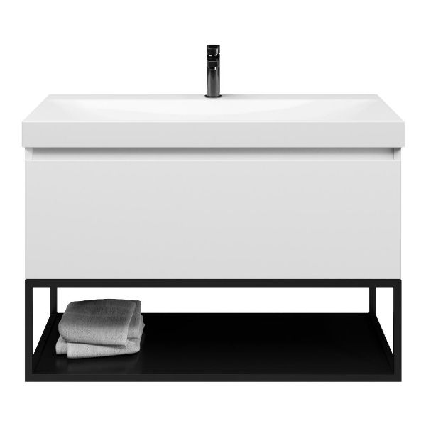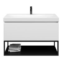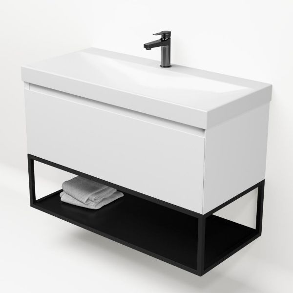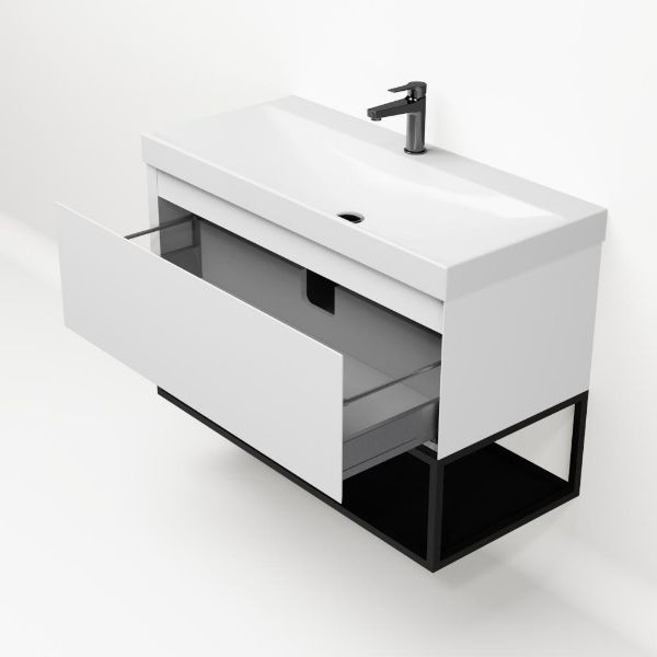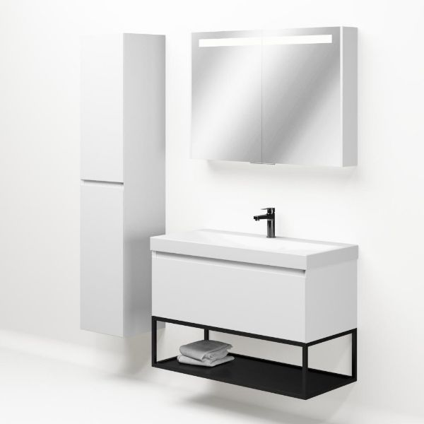 Bellanti Solo/Tela/Jenthe badmeubel 100x46 1 softclose lade wit mat greeploos keramische wastafel wit glans met 1 kraangat met mat zwart metalen frame
