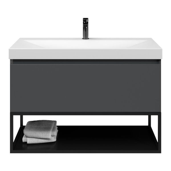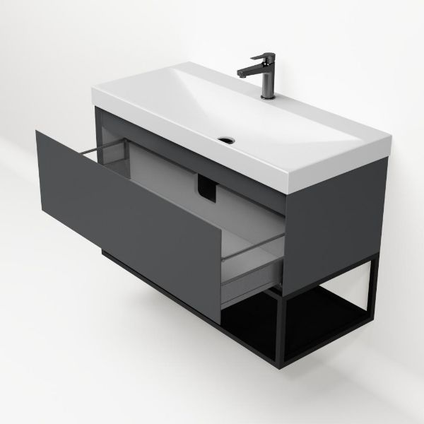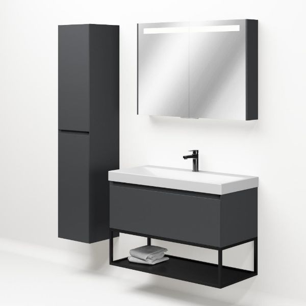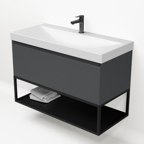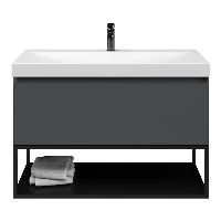 Bellanti Solo/Tela/Jenthe badmeubel 100x46 1 softclose lade antraciet mat greeploos keramische wastafel wit mat met 1 kraangat met mat zwart metalen frame