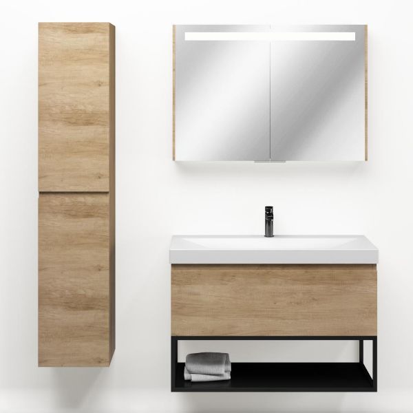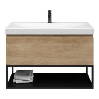 Greeploos badkamermeubel in de kleur olm is 100 cm breed.  De wastafel is vervaardig in keramiek en heeft de kleur wit mat. Dit badkamermeubel met deze wastafel is leverbaar tussen de 60 cm t/m 140 cm