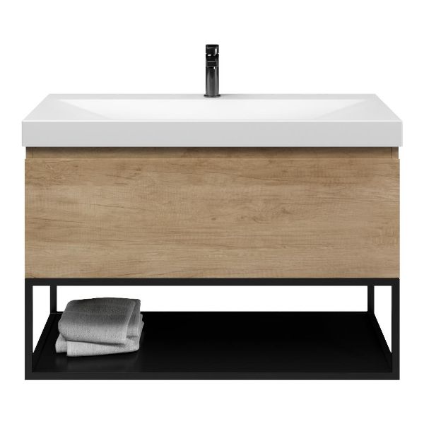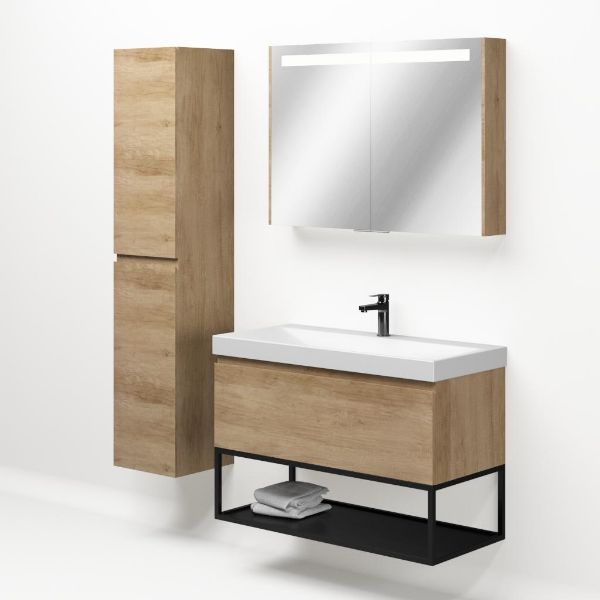 Bellanti Solo/Tela/Jenthe badmeubel 100x46 1 softclose lade olm greeploos keramische wastafel wit mat met 1 kraangat met mat zwart metalen frame
