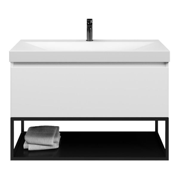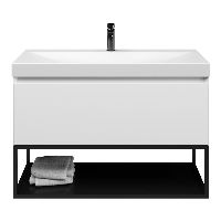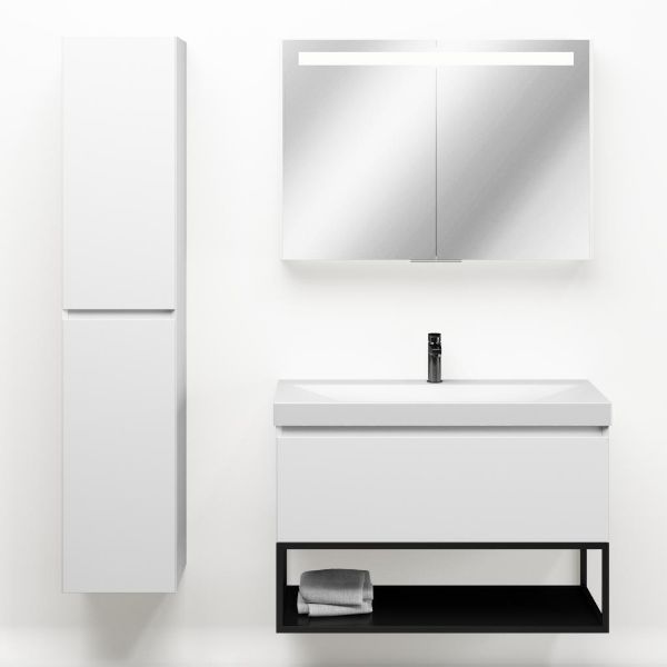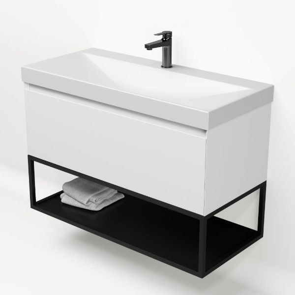 Bellanti Solo/Tela/Jenthe badmeubel 100x46 1 softclose lade wit mat greeploos keramische wastafel wit mat met 1 kraangat met mat zwart metalen frame