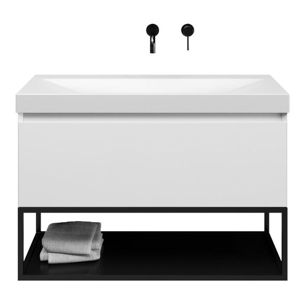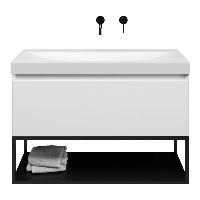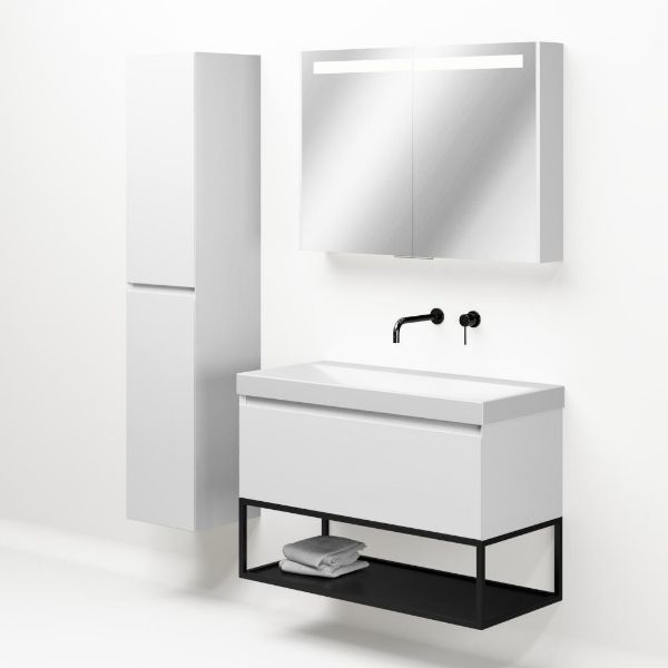 Bellanti Solo/Tela/Jenthe badmeubel 100x46 1 softclose lade wit hoogglans greeploos keramische wastafel wit mat zonder kraangaten met mat zwart metalen frame
