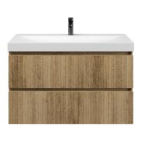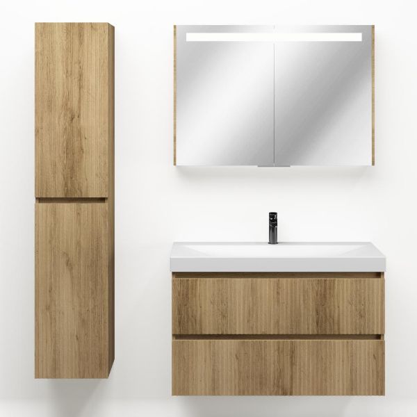 | Bellanti Silvan/Jenthe badmeubel 100x46 2 softclose laden warm eiken greeploos keramische wastafel wit mat met 1 kraangat |
