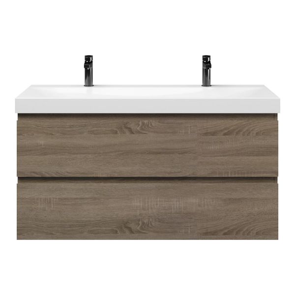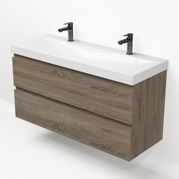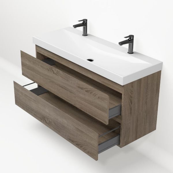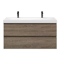 | Bellanti Fiore/Jenthe badmeubel 120x46 2 softclose laden eiken donker greeploos keramische wastafel wit glans met 2 kraangaten |
