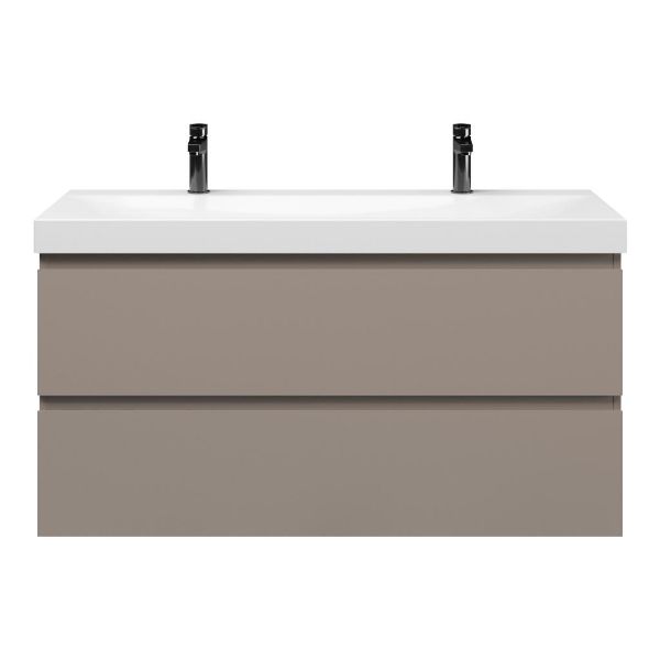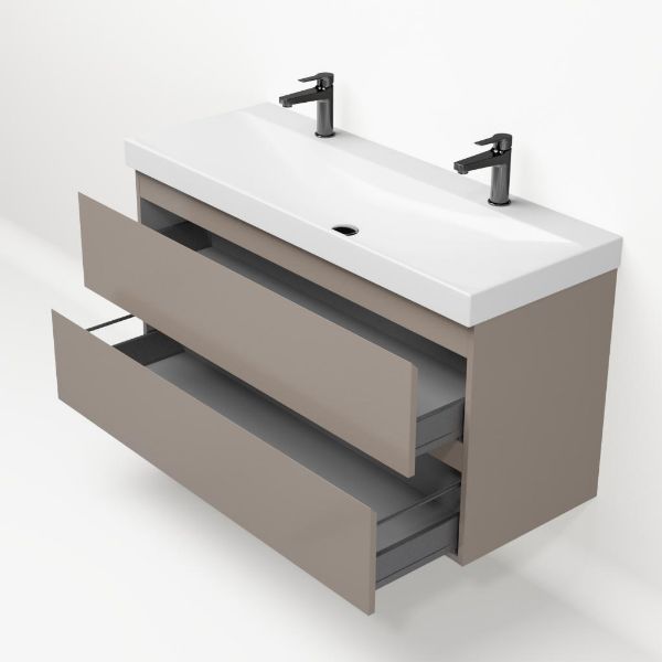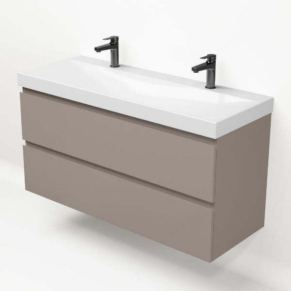 | Bellanti Fiore/Jenthe badmeubel 120x46 2 softclose laden taupe greeploos keramische wastafel wit glans met 2 kraangaten |