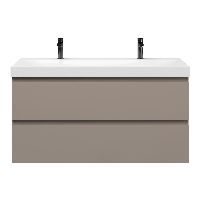 | | Bellanti Fiore/Jenthe badmeubel 120x46 2 softclose laden taupe greeploos keramische wastafel wit glans met 2 kraangaten |