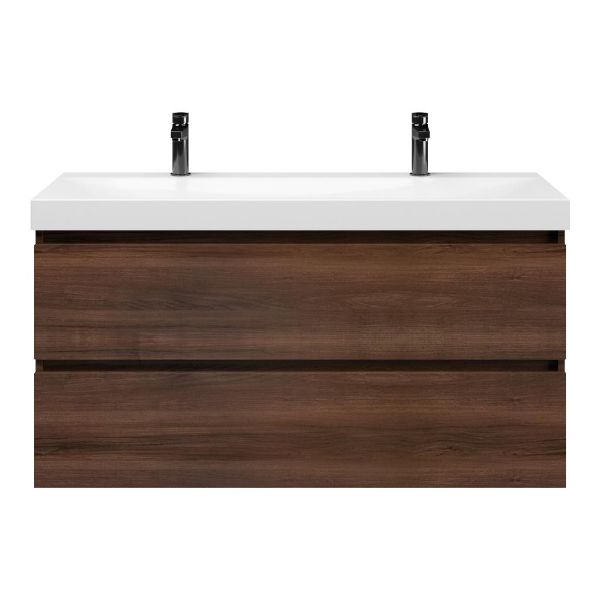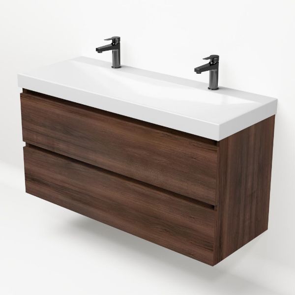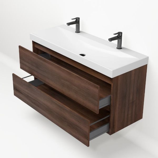 | Bellanti Fiore/Jenthe badmeubel 120x46 2 softclose laden walnoot greeploos keramische wastafel wit glans met 2 kraangaten |