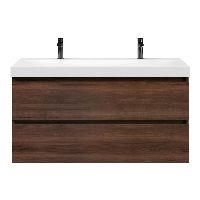 Greeploos badkamermeubel in de kleur walnoot is 120 cm breed. De wastafel is vervaardig in keramiek en heeft de kleur wit glans. Dit badkamermeubel met deze wastafel is leverbaar in 120 cm.