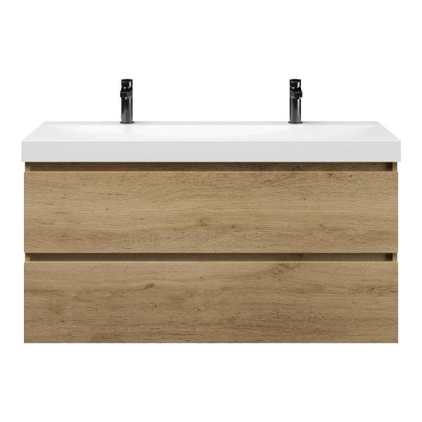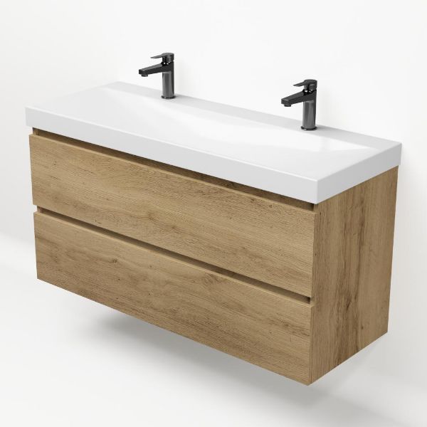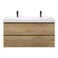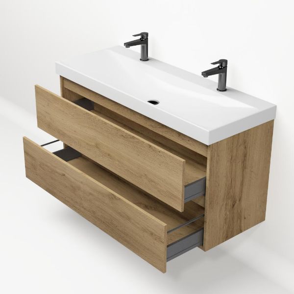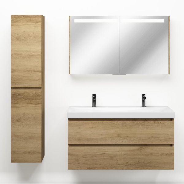 | Bellanti Fiore/Jenthe badmeubel 120x46 2 softclose laden warm eiken greeploos keramische wastafel wit glans met 2 kraangaten |