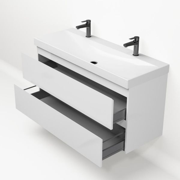 | | Bellanti Fiore/Jenthe badmeubel 120x46 2 softclose laden wit hoogglans greeploos keramische wastafel wit glans met 2 kraangaten |