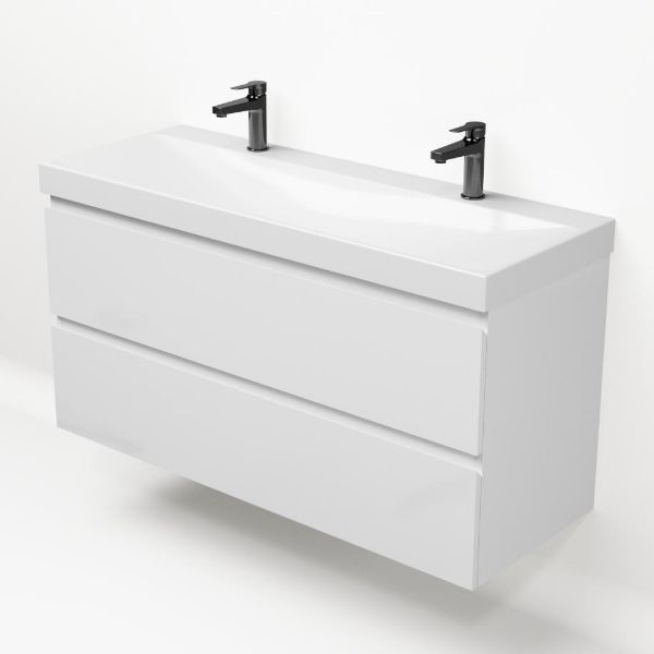 | Bellanti Fiore/Jenthe badmeubel 120x46 2 softclose laden wit hoogglans greeploos keramische wastafel wit glans met 2 kraangaten |