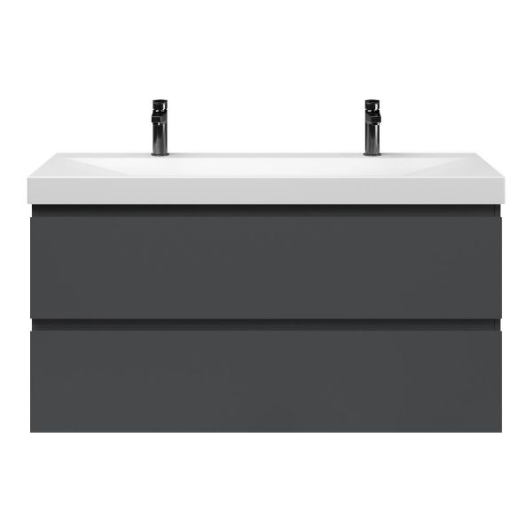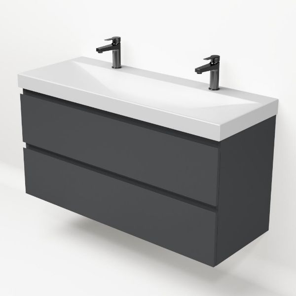 | Bellanti Fiore/Jenthe badmeubel 120x46 2 softclose laden antraciet mat greeploos keramische wastafel wit mat met 2 kraangaten |