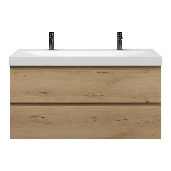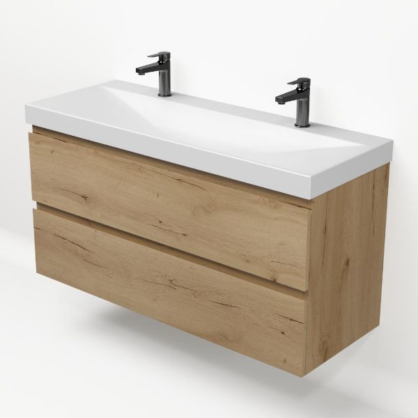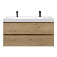 | Bellanti Fiore/Jenthe badmeubel 120x46 2 softclose laden eiken natuur greeploos keramische wastafel wit mat met 2 kraangaten |