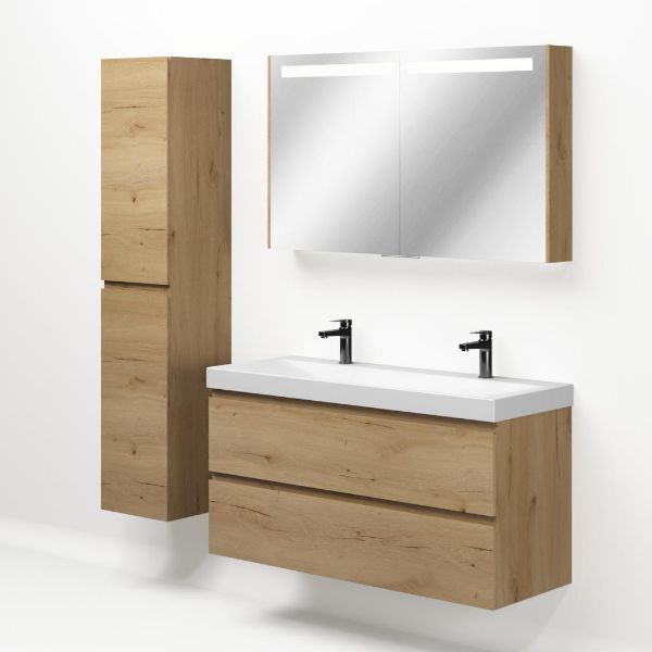 | | Bellanti Fiore/Jenthe badmeubel 120x46 2 softclose laden eiken natuur greeploos keramische wastafel wit mat met 2 kraangaten |