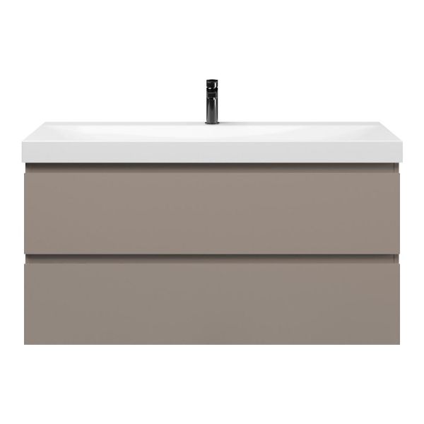 | Bellanti Fiore/Jenthe badmeubel 120x46 2 softclose laden taupe greeploos keramische wastafel wit glans met 1 kraangat |