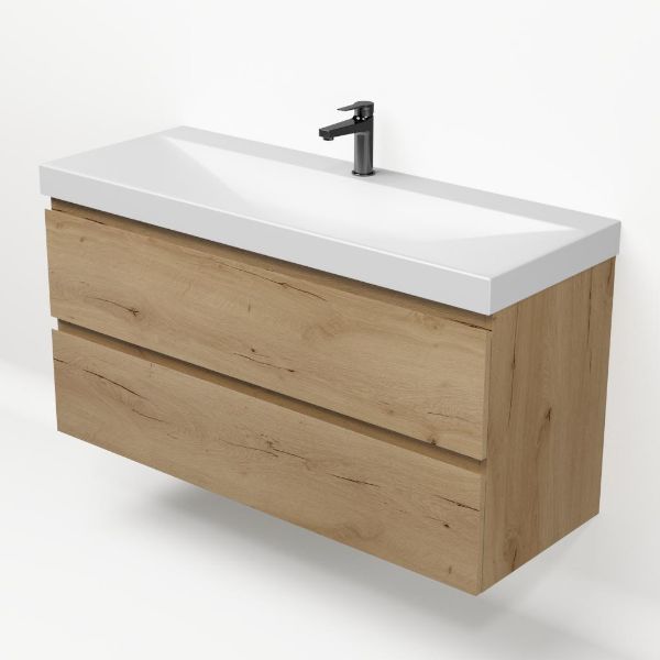 | Bellanti Fiore/Jenthe badmeubel 120x46 2 softclose laden eiken natuur greeploos keramische wastafel wit mat met 1 kraangat |