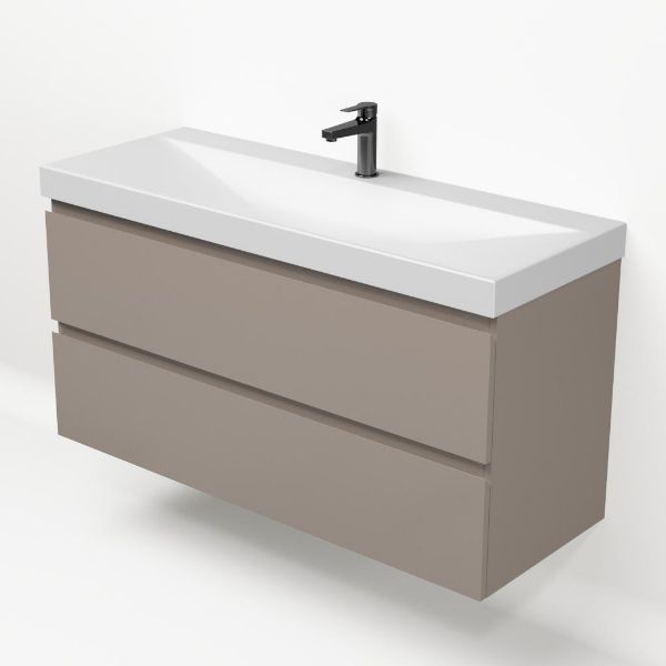 | Bellanti Fiore/Jenthe badmeubel 120x46 2 softclose laden taupe greeploos keramische wastafel wit mat met 1 kraangat |