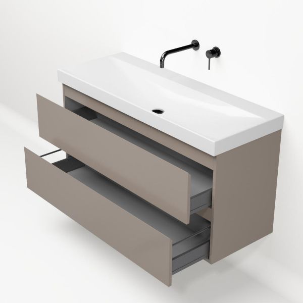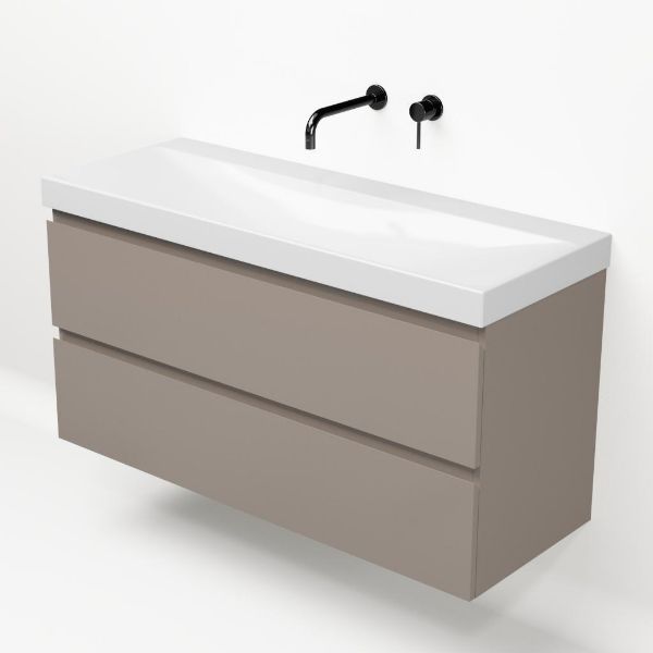 | Bellanti Fiore/Jenthe badmeubel 120x46 2 softclose laden taupe greeploos keramische wastafel wit glans zonder kraangaten |