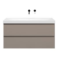 | | Bellanti Fiore/Jenthe badmeubel 120x46 2 softclose laden taupe greeploos keramische wastafel wit glans zonder kraangaten |